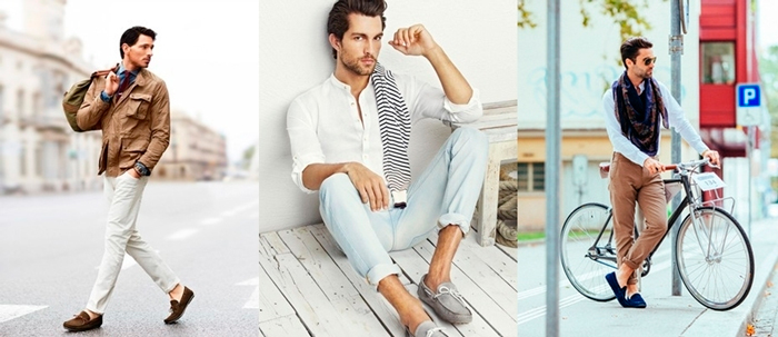 - С джинсами. Для повседневного образа можно надеть светлые мокасины с простой футболкой и джинсами, а для более формального случая – темные туфли с рубашкой и галстуком.
